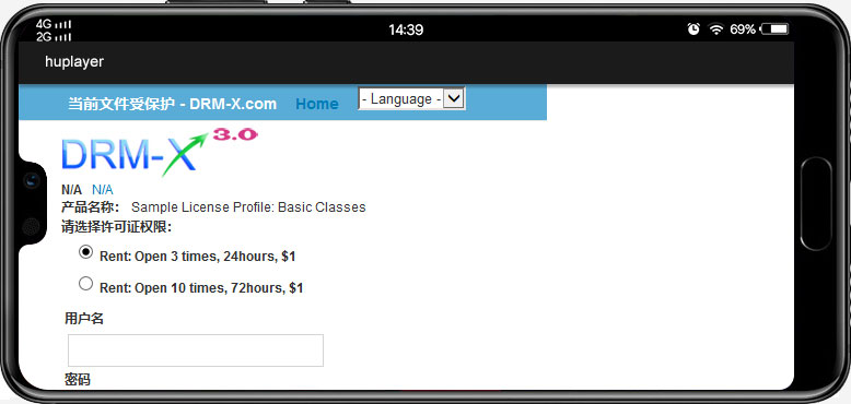- 用户验证: 当用户打开加密文件时,将会弹出登录验证的窗口,只有经过验证的用户才可以打开加密的文件。验证规则可以通过DRM用户系统验证或者将DRM系统与您的用户系统进行集成,集成后,验证规则将由您自己定义,比如,验证用户的IP,是否购买了你网站上的某个课程等。