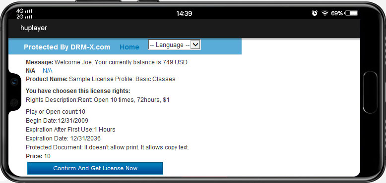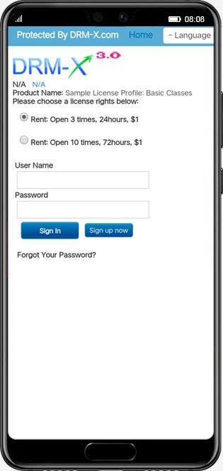 User Authentication: When a user opens an encrypted file, a login authentication window will pop up and only authenticated users can open the encrypted file. The authentication rules can be verified by DRM user system or integrate DRM system with your user system, after integration, the authentication rules will be defined by you, for example, verify the user's IP, whether he/she has purchased a certain course on your website and so on.Content decryption: After verification, the license server will send the license key to the current Android device, and the Android DRM client will use the key to decrypt the content, and the user can play or open the encrypted file normally.