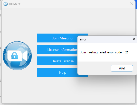 10.When using HHMeet to join a meeting, it prompts "Join meeting failed, error_code = 23", the error screenshot is as follows:
