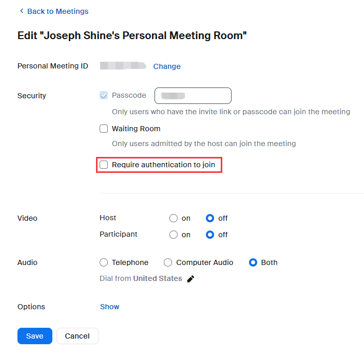 Solution: Set up the meeting and do not select "Require authentication to join"