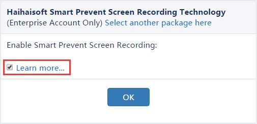 To turn on Haihaisoft Smart Prevent Screen Recording Technology, you have to purchase DRM-X 4.0 Enterprise account, and in Rights->Edit Rights, please choose Enable Haihaisoft Smart Prevent Screen Recording Technology.