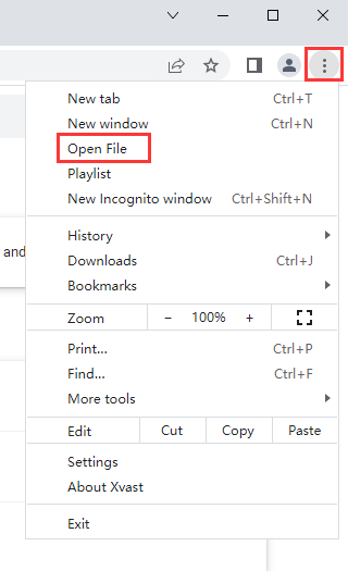 2.Open the local file via the Xvast "Menu" – "Open File":