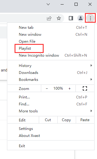 Open the Xvast browser – "Menu" — "Playlist"