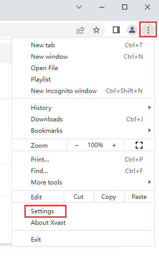 Click the icon in the upper right corner of the Xvast interface. It will pop-up a menu: