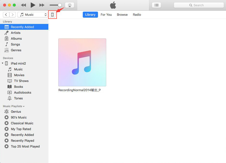 Step 2:Open the iTunes in PC/Mac, click "Device" icon as shown by the red arrow below.