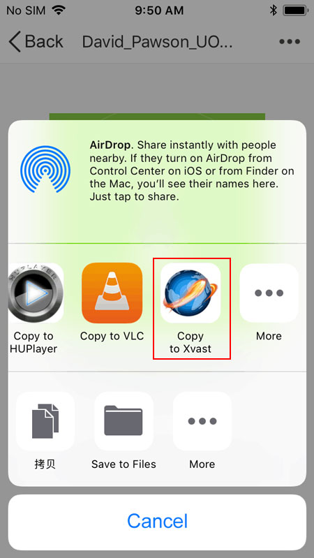 Copy files to Xvast via the third-party Apps