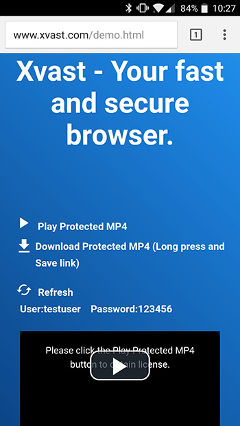 Click the Save link, the Xvast will start download the audio/video. If download is completed, the video will be automatically opened, if you have not obtain license, it will redirect to the obtain license page. After you got the license, you can play the encrypted media file.