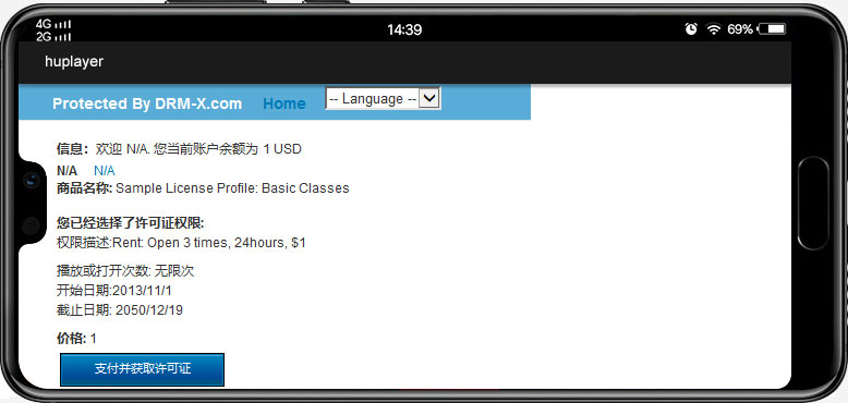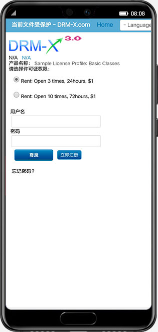 用户身份验证: 当用户打开加密文件时,会弹出登录验证窗口,只有通过验证的用户才能打开该加密文件。验证规则可以通过DRM用户系统进行验证,也可以将DRM系统与您的用户系统集成。集成后,您可以自行定义验证规则,例如验证用户的IP地址、是否在您的网站上购买过特定课程等等。内容解密: 验证通过后,许可证服务器会将许可证密钥发送到当前 Android 设备,Android DRM 客户端会使用该密钥解密内容,用户即可正常播放或打开加密文件。