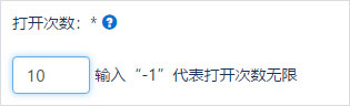 打开次数是指用户获得许可证后(包括刷新)可以打开文件的次数。如果许可证权限设置中的“打开次数”为 10,则用户获得许可证后只能打开 10 次文件(包括刷新)。如果您不想限制打开次数,可以在许可证权限设置中将打开次数设置为“-1”。
