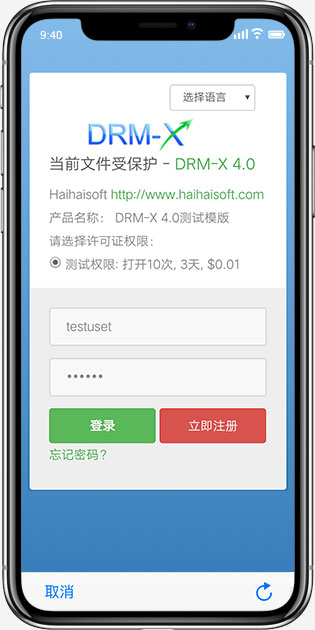 Xvast 支持 DRM-X 4.0 加密的 mp3、mp4 和 PDF 文件。您的客户只需安装一个 Xvast 应用即可打开受保护的音频/视频和 PDF 文件。首次打开加密文件时,用户需要登录获取许可证才能打开文件。用户获得的许可证绑定到其设备,不允许传播。